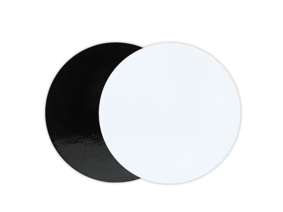Cienki podkład cukierniczy o średnicy 18 cm w eleganckim biało-czarnym kolorze. Idealny do mini tortów i monoporcji – lekki, estetyczny i funkcjonalny.