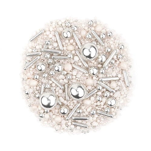 Jest coś szczególnego w czystej bieli. Elegancki, ekskluzywny mix w minimalistycznej i powściągliwej odsłonie. Gdy w grę wchodzą wyjątkowe okazje takie jak chrzest, komunia czy rocznica ślubu, CRYSTAL WHITE to prawdziwy as w rękawie cake designera. Piękne srebro nie zakłóca białej bazy tej mieszanki, a jedynie wydobywa jej prawdziwy blask. To proste i zgrabne połączenie sprawia, że nie tylko sama posypka, ale wszystko na czym się znajdzie, po prostu lśni. 🤍