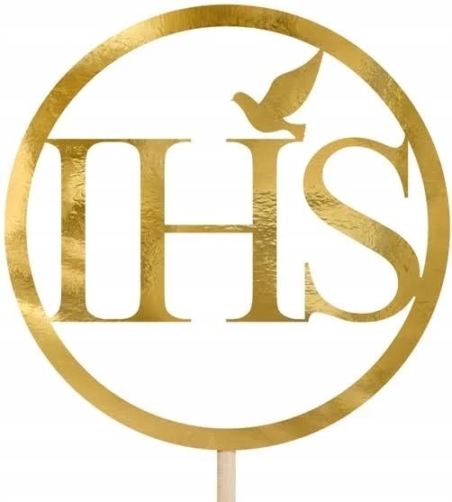 Złoty topper na tort IHS 22 cm – elegancka dekoracja na I Komunię Świętą. Podkreśl wyjątkowy charakter uroczystości i ozdób tort w kilka sekund!