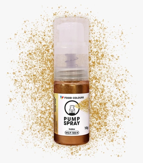 Metaliczny pyłek w postaci suchego sprayu do szybkiego i efektownego dekorowania powierzchni i mas: tortów, kremów, galaretek i żeli, form do pralin, czekolady, marcepanów i dekoracji cukrowych.