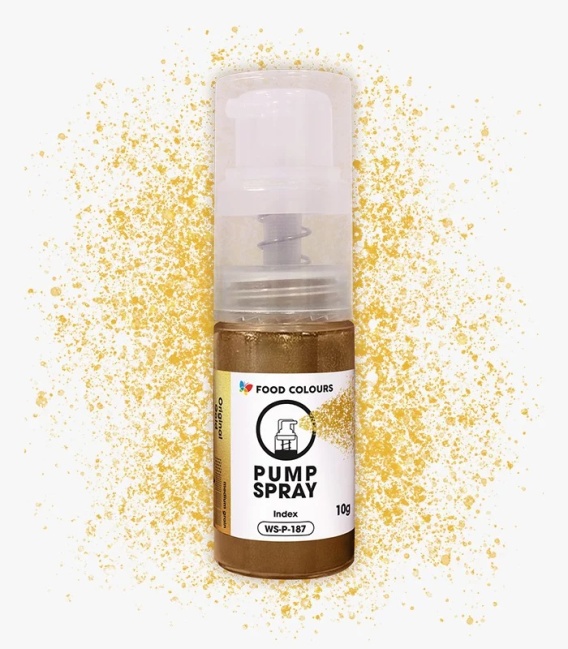 Metaliczny pyłek w postaci suchego sprayu do szybkiego i efektownego dekorowania powierzchni i mas: tortów, kremów, galaretek i żeli, form do pralin, czekolady, marcepanów i dekoracji cukrowych.