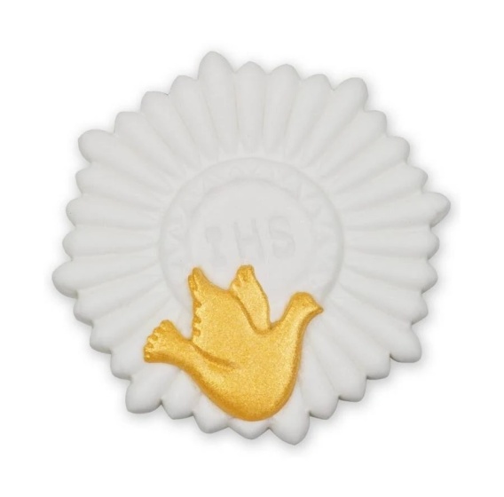 Dekoracja cukrowa Hostia Biała + gołąb 8 cm