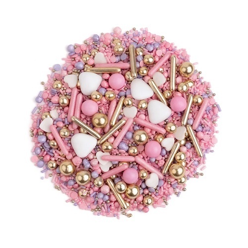 Niezwykle urocza, kolorowa posypka polskiej firmy Słodki bufet. Firma ta znana jest z tworzenia unikalnych mixów posypek, które bez wątpienia przyciągają uwagę, a ich produkty można wykorzystać przy wielu okazjach takich jak urodziny, baby shower, chrzest czy wesele. Idealnie ozdobią nie tylko torty, ale też ciasteczkowe lody, cake popsy oraz ciasteczka z lukrem.