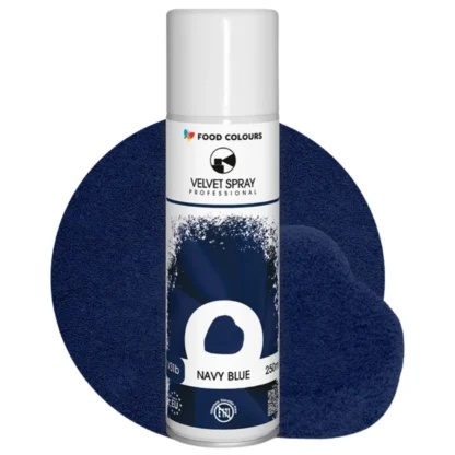 Delikatny zamsz w sprayu o granatowym odcieniu Navy Blue to szybki sposób na eleganckie wykończenie tortów, monoporcji i deserów czekoladowych. Tworzy efekt aksamitnej, matowej powierzchni. Idealny do nowoczesnej dekoracji – bez E171 i barwników azowych (AZO free)